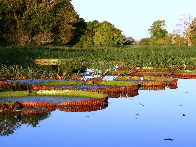 | 1 | Manaus – Turtle LodgeSie werden am Flughafen oder am Ihrem Hotel abgeholt und beginnen Ihre Reise in den Amazonas. Vom Hafen Caesa aus erfolgt die halbstündige Weiterfahrt mit dem Schnellboot zum Dorf Careiro da Várzea. Sie passieren dabei die Flusskreuzung „Encontro das águas“, wo der „Rio Negro“ und der „Rio Solimões“ aufeinander treffen. Die beiden Flüsse bilden den Amazonas, der von dieser Region aus den weiten Weg in den Atlantischen Ozean fließt. Nach einem kurzen Stopp auf dem Markt, auf dem es zahlreiche frische exotische Früchte gibt, geht es mit dem Boot über verschiedene Seen und Flüsse, auf denen Sie die riesigen Amazonas Wasserlilien (Vitoria regia) bestaunen können. Neben den Wasserlilien wird es natürlich auch verschiedenste Tier- und Fischarten zu bewundern geben. Die Ankunft in der Turtle Lodge ist für die Mittagszeit geplant. Nach dem Mittagessen geht es auf einen Erkundungstrip mit dem motorisierten Kanu. Abendessen gibt es wieder in der Turtle Lodge.