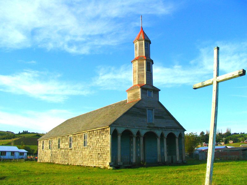 | 3 | Cucao - AncudSie fahren weiter in Richtung Norden zur Hafenstadt Ancud. Auf der Fahrt empfehlen wir Ihnen einen Abstecher an die Ostküste, mit ihren zahlreichen Kanälen, vorgelagerten Inseln und Holzschindelkirchen, zu machen. Sehenswert ist hier insbesondere die schöne Holzkirche im Dorf Achoa auf der Isla Quinchao, bei welcher die Einzelteile ausschließlich mit Holzdübeln und ohne einen einzigen Nagel verbunden wurden. Oder wie wäre es alternativ mit einem Zwischenstopp im schönen Dörfchen Dalcahue, welche schon zu präkolumbischer Zeit als Anlaufhafen fungierte? Im weiter nördlich gelegenen Fischerdorf Quemchi können Sie in einem Restaurant an der Uferpromenade zu Mittag essen, bevor Sie weiter in das lebhaften Fischerstädtchen Ancud fahren, wo Sie heute übernachten. Hier können Sie den Abend mit einem leckeren Abendessen in einem der zahlreichen Fisch- und Meeresfrüchte-Restaurants ausklingen lassen.
