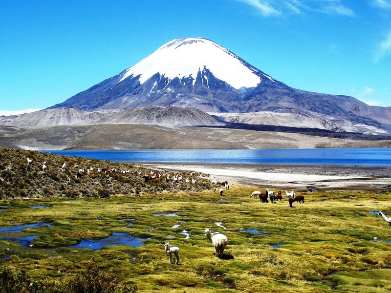 | 3 | Lauca Nationalpark - PutreEntdecken Sie heute die faszinierende Schönheit des Lauca Nationalparks mit seinen wunderschönen Landschaften und der exotischen Pflanzen- und Tierwelt. Halten Sie auf dem Weg Ausschau nach den Lama- und Alpacaherden, die von den wenigen Bewohnern gezüchtet werden. Mit viel Glück entdecken Sie einen der wildlebenden Verwandten, die schlanken Vicuñas. Ebenfalls faszinierend sind die Llareta-Pflanzen, die erst ab einer Höhe von 4.000 m wachsen. Auf den kargen Felsen schmiegen sich die leuchtend grünen Pflanzen wie Decken um die Gesteine. Auch für Vogelliebhaber ist der Nationalpark ein kleines Paradies. Beobachten Sie Flamingos in ihrem natürlichen Lebensraum und halten Sie Ausschau nach den flugunfähigen Laufvögeln Nandu. Bei einem Besuch des 4.392 m hoch gelegenen Dorfes Parinacota können Sie eine Kirche aus dem 17. Jahrhundert bestaunen. Anschließend führt Sie die heutige Tour zu einem der höchstgelegenen Seen der Welt. Der Chungara See leuchtet saphirblau und verzaubert Besucher durch seine einzigartig schöne Landschaft.