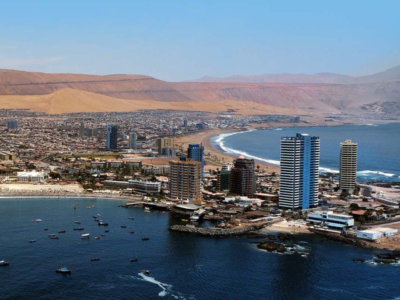 | 5 | Arica - IquiqueHeute fahren Sie durch die „Pampa“, einer trockenen Wüste in einer Höhe von 1.000 bis 1.200 Meter über dem Meeresspiegel weiter nach Iquique. Auf dem Weg können Sie einen Abstecher ins Copda-Tal machen (ca. 95 km / 1,5 Std.). Von Codpa aus können Sie eine Wanderung in die Umgebung unternehmen. Codpa ist eine Flussoase und liegt inmitten der Hochwüste auf rund 2.000 Metern. Gleichzeitig ist es der Hauptort des tiefeingeschnittenen Canyons. Der Ort besteht aus kleinen, weißen Häusern und engen Gassen. Es gibt eine Lehmziegelkirche aus dem 17. Jahrhundert. Nur ca. vier Kilometer weiter flussaufwärts liegt der kleine Ort Guanacagua mit einer noch älteren Kapelle aus dem 16. Jahrhundert. Die Felder in der Umgebung werden bewässert und hier werden Guajaven, Orangen und auch eine spezielle Weintraubensorte angebaut. Diese Weintrauben werden zu dem schweren und süßen Wein Pintatani verarbeitet. Auf der Weiterfahrt nach Iquique unterbrechen zahlreiche Canyons die hohe, trockene Fläche. Kurz vor Iquique fahren Sie an den ehemaligen Salpeterabbaustätten Humberstone und Santa Laura vorbei, die von 1862 und 1960 in Betrieb waren. Diese „Geisterstädte“ wurden von der UNESCO zum Weltkulturerbe erklärt, um sie vor dem Verfall zu schützen. Genießen Sie auf dem Weg in die Stadt den fantastischen Ausblick auf die Bucht von Iquique. Sehenswert sind dort unter anderem die überdachte Passagier Mole sowie der Astoreca Palast und das Theater bzw. Opernhaus, das 1980 während des Salpeterbooms gebaut wurde.