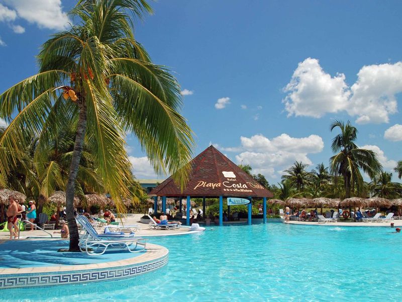 Lage:Die geschmackvoll gestaltete All-Inclusive-Anlage, liegt direkt am Strand und inmitten einer gepflegten Gartenanlage. Hotel:Das Hotel verfügt über zwei Swimmingpools mit Sonnenschirmen und Handtuchservice. Im Haus liegt die großzügig gestaltete Empfangshalle mit zwei Buffet-Restaurants, im Außenbereich und am Strand findet man ein italienisches, ein mexikanisches und natürlich ein traditionell kubanisches Restaurant. Nachtschwärmer fühlen sich an der Lobbybar oder in der schallisolierten Diskothek am wohlsten. Ein besonderes Highlight bei Tag und bei Nacht ist die gemütliche Poolbar, die doppelte Erfrischung garantiert. Gegen Gebühr werden Reitausflüge, Wassersportmöglichkeiten, Tauchkurse und vieles mehr in der Nähe des Hotels angeboten.Zimmer:Die Zimmer sind mit Dusche, Klimaanlage, Sat-TV und Telefon ausgestattet und verfügen über einen möblierten Balkon bzw. eine Terrasse.